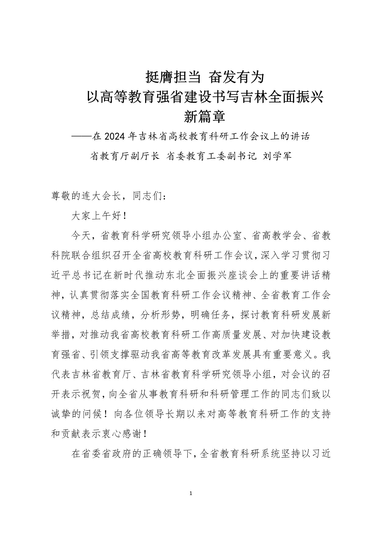 省教育厅副厅长 省委教育工委副书记 刘学军在2024年吉林省高校教育科研工作会议上的讲话,全文如下:...