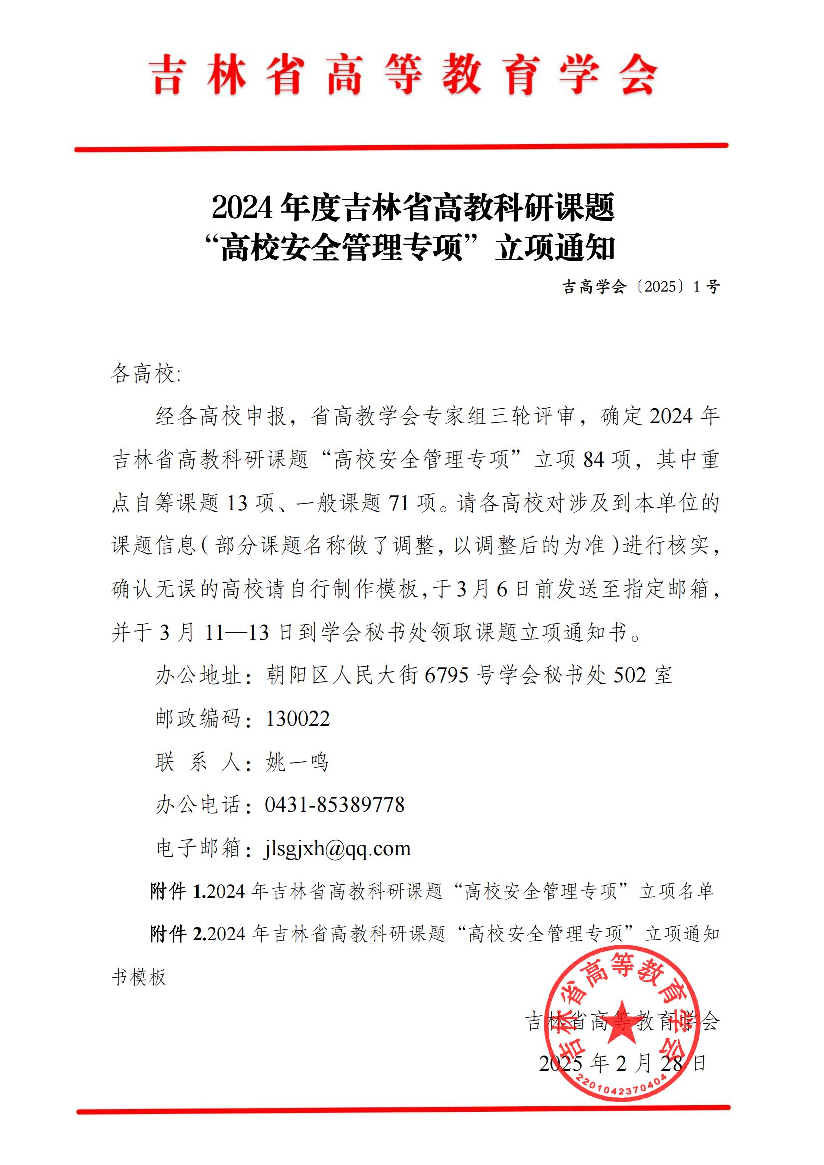 附件1.2024年吉林省高教科研课题高校安全管理专项立项名单 附件2.2024年吉林省高教科...