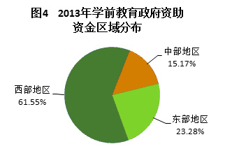 资助金额。2013年,各级政府共投入资金38.57亿元,比2012年增加13.07亿元,增幅51.25%。其中,中央安排学前教育幼儿资助奖补资金8.20亿元,占总额的21.26%;省级16.43亿元,占42.60%;市级4.62亿元,占11.98%;县级9.32亿元,占24.16%。